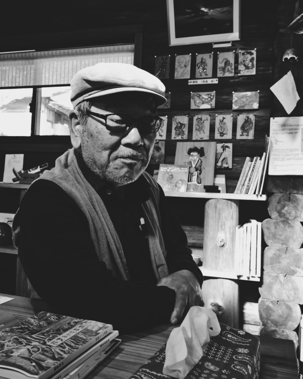 But life always finds a way, as they say here in the mountains. There is a little bakery on the outskirts of the village; I can’t imagine who finds their way here to buy bread. Still, they make the effort to import the finest flour from Hokkaido and experiment with new seasonal fillings for the curry bread. Because what else is there to do? Almost every weekend, we gather for a spiritual festival; a shrine needs care because the spirits will live on even when the humans are gone. So we better do our best for them. Everyone is doing their best here, my friend, the older Japanese gentleman, tells me before we get back into the Toyota and drive to the roadside twin peakish diner higher up in the mountains. Coffee-and-cake is essential, as are the hotpot dinner parties with homebrew sake and nostalgic love songs. At first, I tried to resist. I came here to hide away from a world dying from global warming, war and hyper-capitalism. I wanted to focus on my writing, computer games, and black-and-white photography. I wanted to be alone, distracted, hidden away, but that’s not how it works here up in the mountains of Mie.